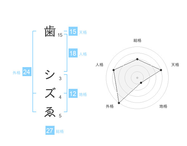 歯 シズゑさんを姓名の画数から五運を鑑定