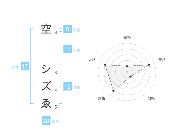 空 シズゑさんの総格は20画の1点!