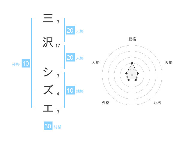 三沢 シズエさんを姓名の画数から五運を鑑定
