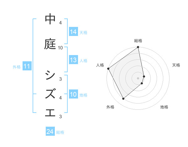 中庭 シズエさんの総格は24画の5点!