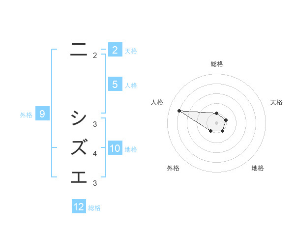 二 シズエさんの総格は12画の1点!