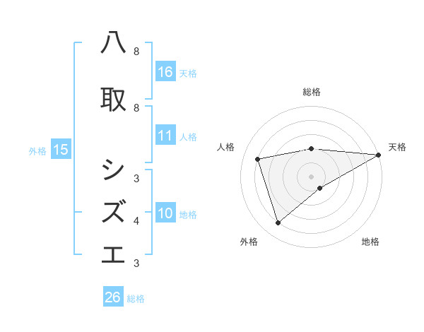 八取 シズエさんの天格は16画の5点!