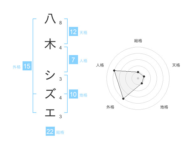 八木 シズエさんの外格は15画の4点!