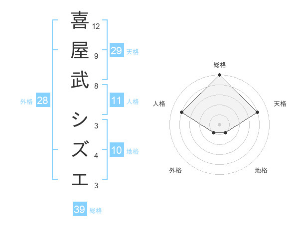 喜屋武 シズエさんの天格は29画の4点!