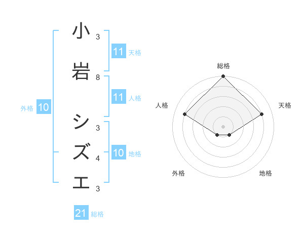 小岩 シズエさんの総格は21画の5点!