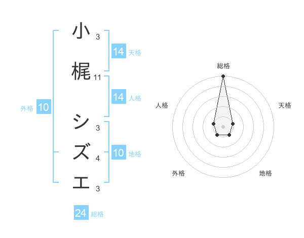 小梶 シズエさんの総格は24画の5点!