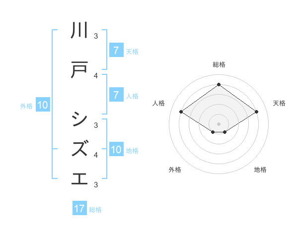 川戸 シズエさんを姓名の画数から五運を鑑定