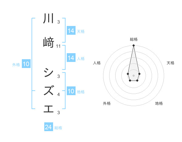 川﨑 シズエさんを姓名の画数から五運を鑑定
