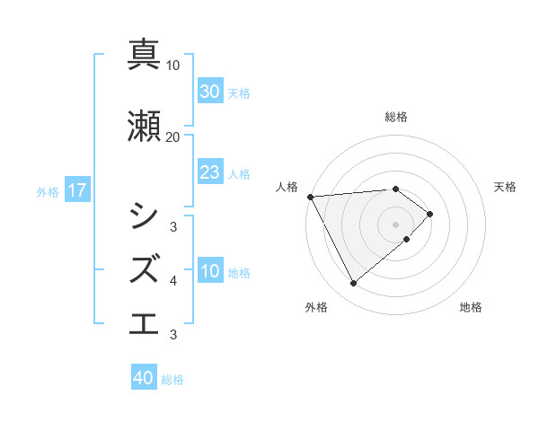 真瀬 シズエさんの人格は23画の5点!