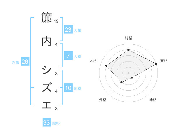 簾内 シズエさんを姓名の画数から五運を鑑定