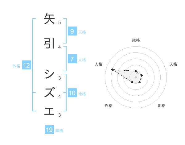 矢引 シズエさんの総格は19画の1点!