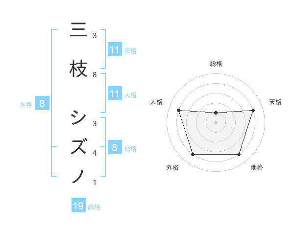 三枝 シズノさんを姓名の画数から五運を鑑定