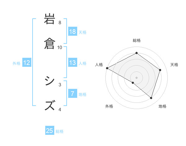 岩倉 シズさんを姓名の画数から五運を鑑定