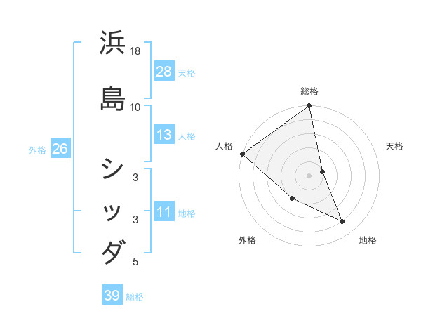 浜島 シッダさんを姓名の画数から五運を鑑定