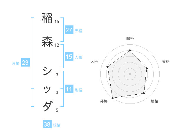 稲森 シッダさんの天格は27画の3点!
