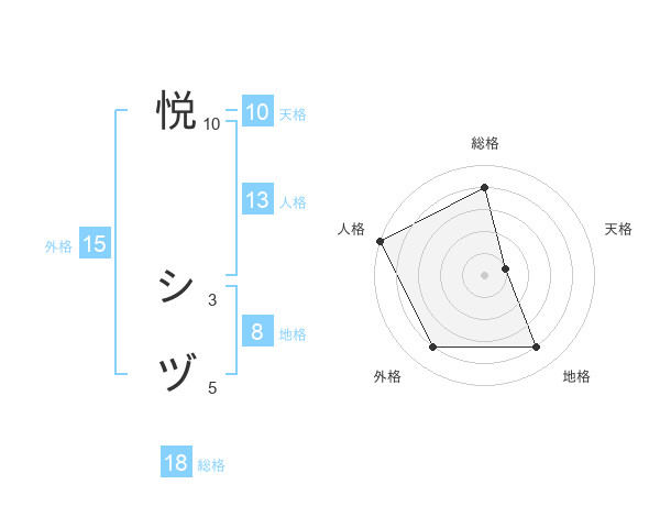 悦 シヅさんの総格は18画の4点!