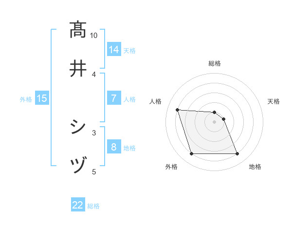 髙井 シヅさんを姓名の画数から五運を鑑定