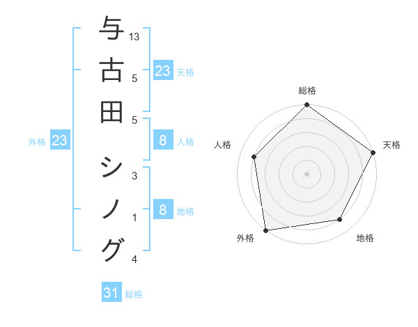 与古田 シノグさんの総格は31画の5点