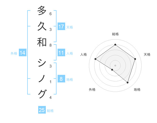 多久和 シノグさんを姓名の画数から五運を鑑定