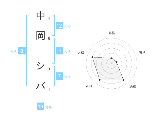 中岡 シバさんの天格は12画の1点!