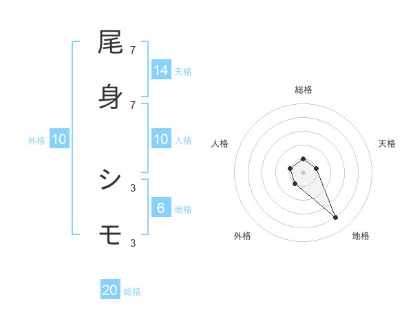 尾身 シモさんの総格は20画の1点!