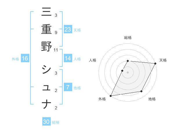 三重野 シュナさんの外格は16画の5点!