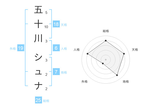 五十川 シュナさんを姓名の画数から五運を鑑定