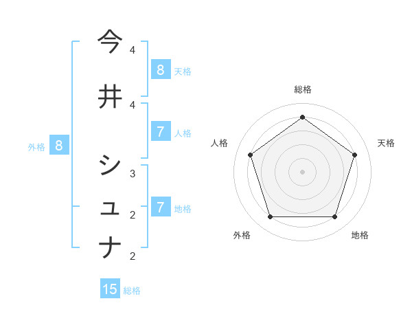 今井 シュナさんの総格は15画の4点!