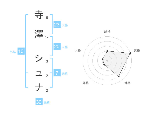 寺澤 シュナさんを姓名の画数から五運を鑑定
