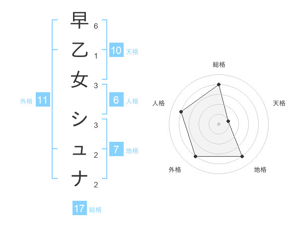 早乙女 シュナさんの総格は17画の4点!