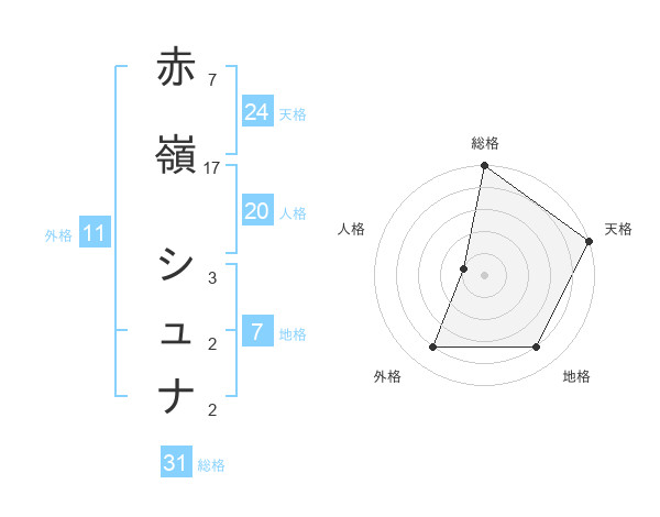 赤嶺 シュナさんの総格は31画の5点!