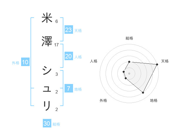 米澤 シュリさんの総格は30画の2点!