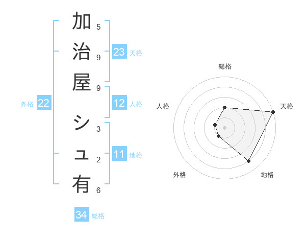 加治屋 シュ有さんの天格は23画の5点