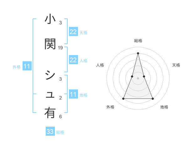 小関 シュ有さんを姓名の画数から五運を鑑定