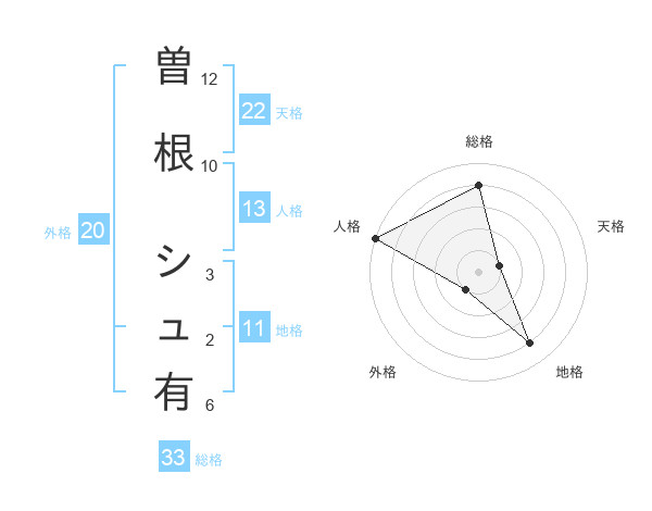 曽根 シュ有さんを姓名の画数から五運を鑑定