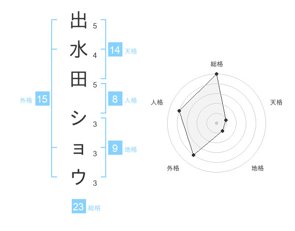 出水田 ショウさんの総格は23画の5点!