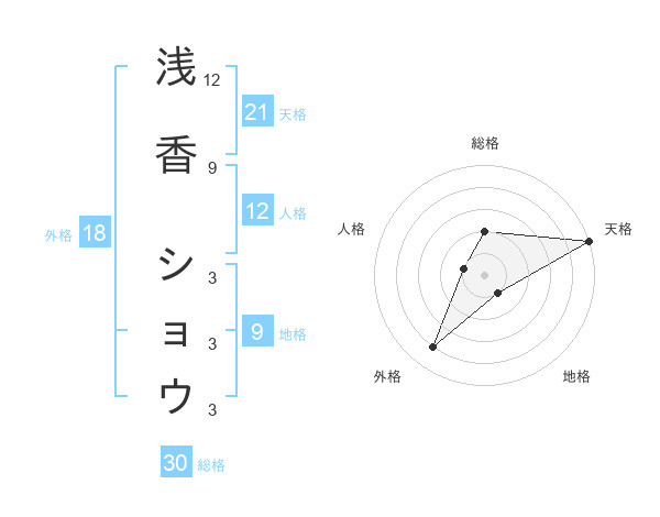 浅香 ショウさんの天格は21画の5点!