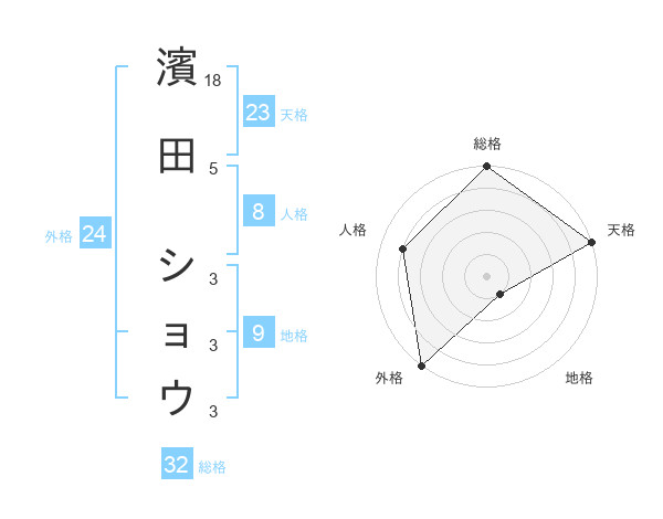 濱田 ショウさんの総格は32画の5点!