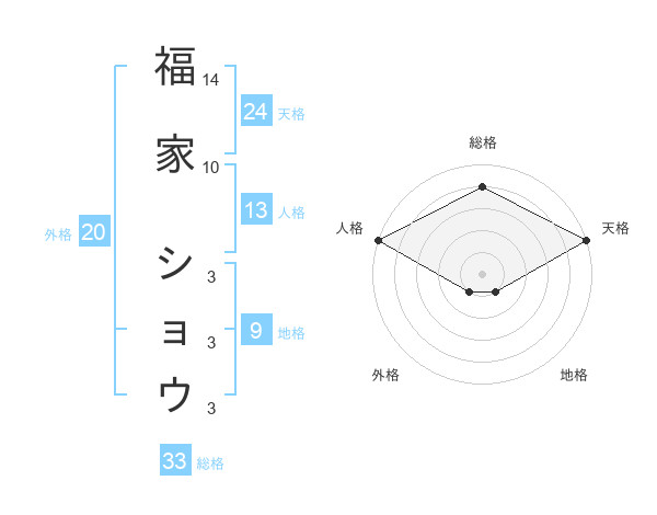 福家 ショウさんの総格は33画の4点!