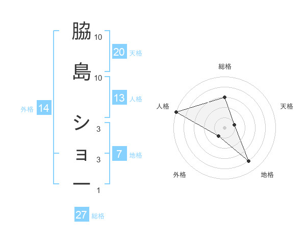 脇島 ショーさんの総格は27画の3点!