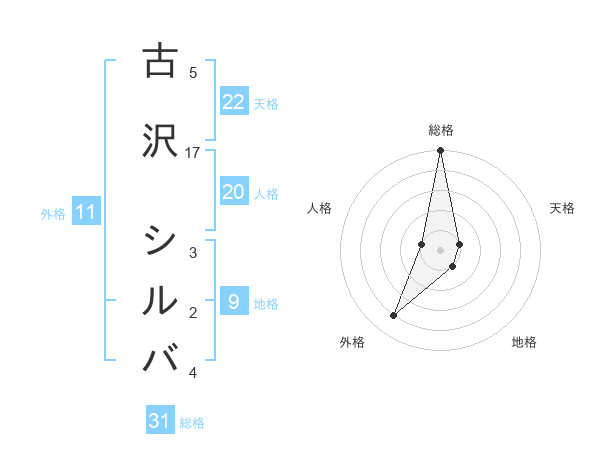 古沢 シルバさんを姓名の画数から五運を鑑定