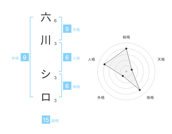 六川 シロさんの総格は15画の4点!