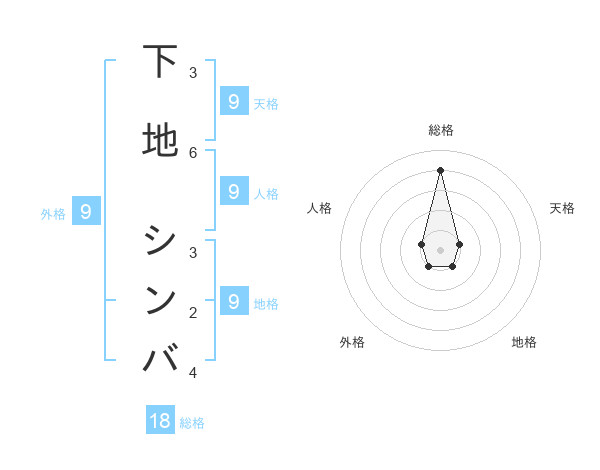下地 シンバさんの総格は18画の4点!