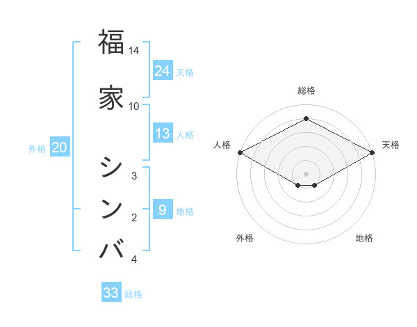 福家 シンバさんの天格は24画の5点!