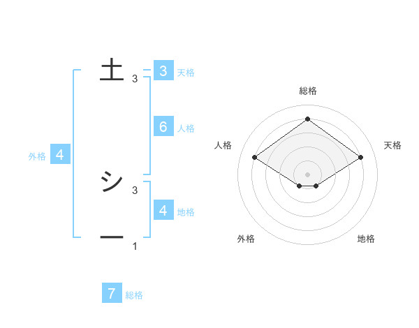 土 シーさんの総格は7画の4点!