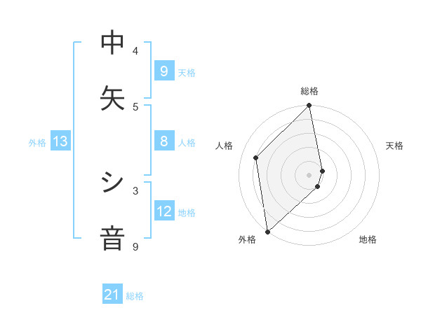 中矢 シ音さんを姓名の画数から五運を鑑定