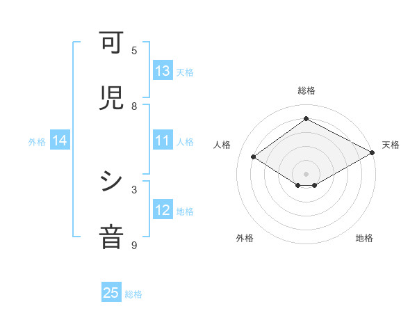 可児 シ音さんの総格は25画の4点!