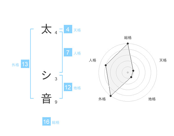 太 シ音さんの外格は13画の5点!