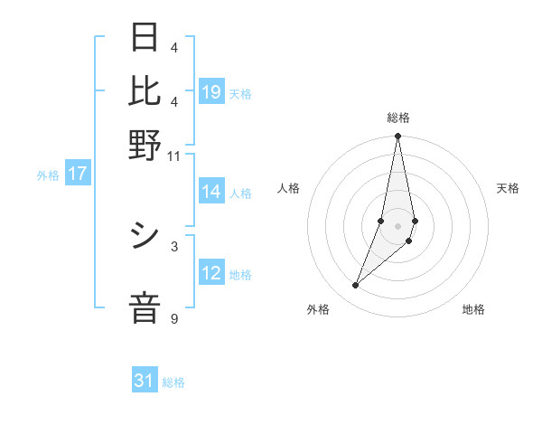 日比野 シ音さんの外格は17画の4点!