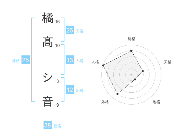 橘髙 シ音さんを姓名の画数から五運を鑑定